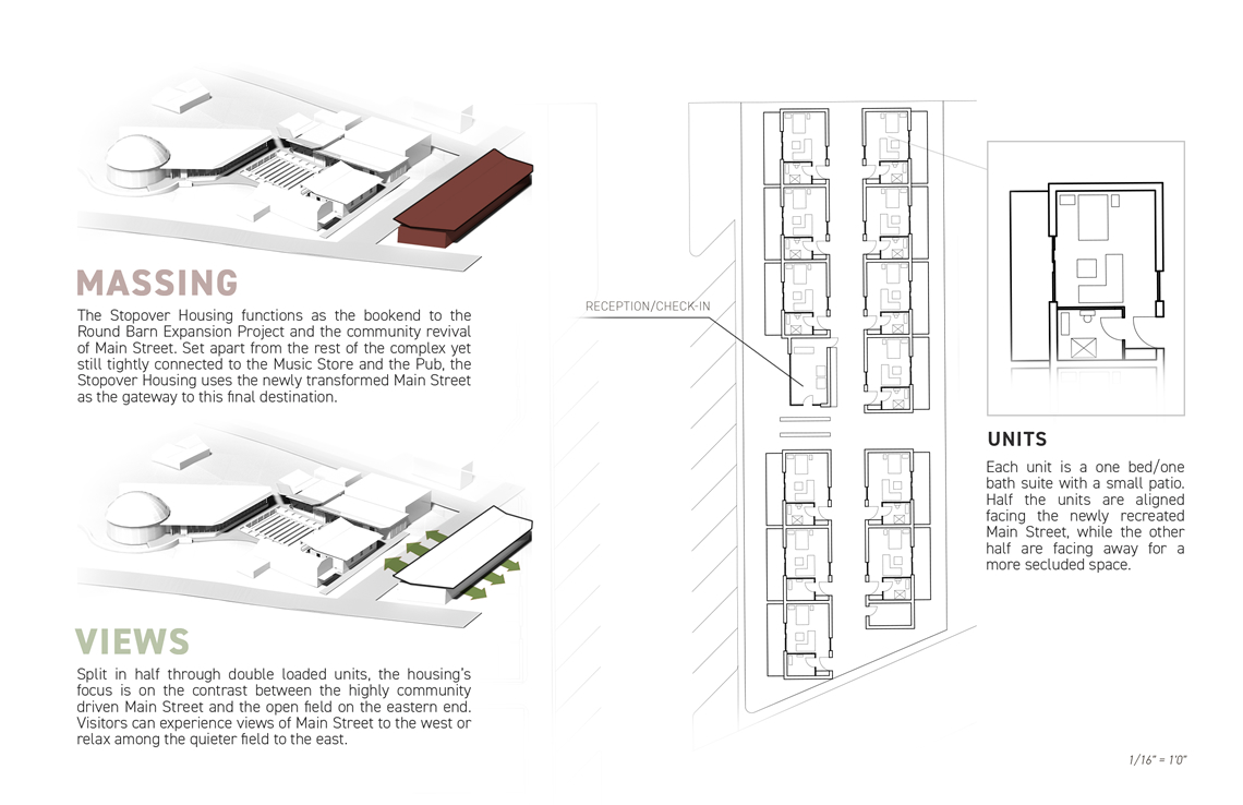 With new entertainment spaces like a beer garden and amphitheater, along with a new complex of buildings next to Route 66 and the Barn, a community of festivals and music sessions is revived in Arcadia, all while keeping careful attention to its history and culture through local materials and humble constructions.