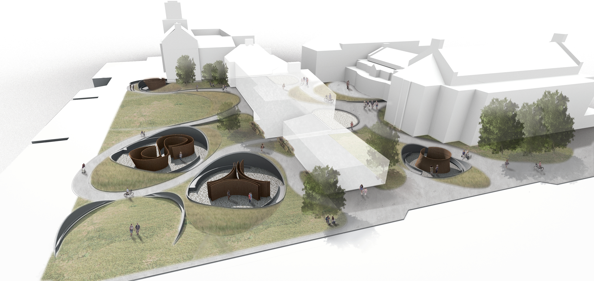 The outdoor sculpture gallery should be specifi cally designed for the Richard Serra Sculpture Collection. It should be designed for pedestrian traffic only, with a combination of landscape and hardscape that move visitors through a series of spaces that highlight the artwork and provide opportunities for observation and refl ection. As such, care should be taken not to make the sculpture gallery a principal place for traffic to and from other major destinations in context.